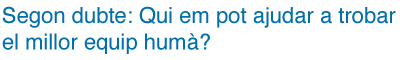 L'empresari té un segon dubte. Si l'empresa és la suma d'un projecte i un equip humà, i l'equip humà és la variable més important, qui em pot ajudar a trobar el millor equip humà?